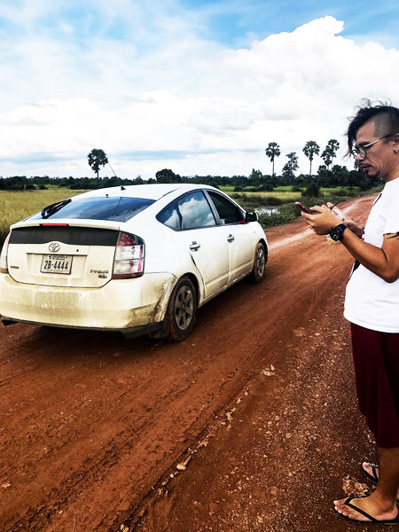 原本從暹粒出發的白色小轎車,經過一天的泥巴洗禮,回來後變成了黃色的戰車,儘管路途勞累,卻能看到意外的風景。