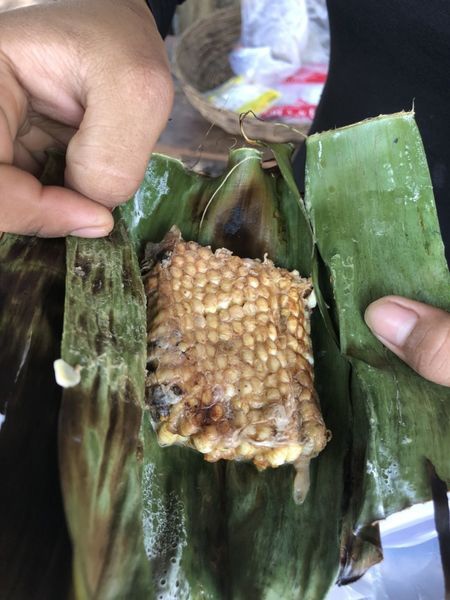 (話說:天真的我,看到有人在兜售,用芭蕉葉包著的東西,以為是個烤香蕉之類東南亞食物,