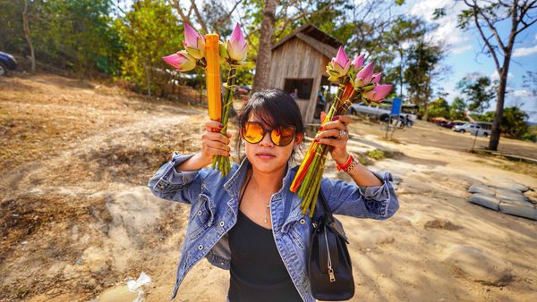 一下車就會有許多軍眷婦女,兜售即溶咖啡、拜拜用的香、蓮花等。婦女用柬語一直對我們說,駐扎在這的軍人很苦,過得很貧窮,希望我們買些產品幫助他們