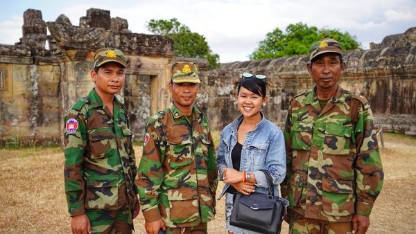 柬埔寨女孩與軍人,一直說他們很辛苦,要與他們合照