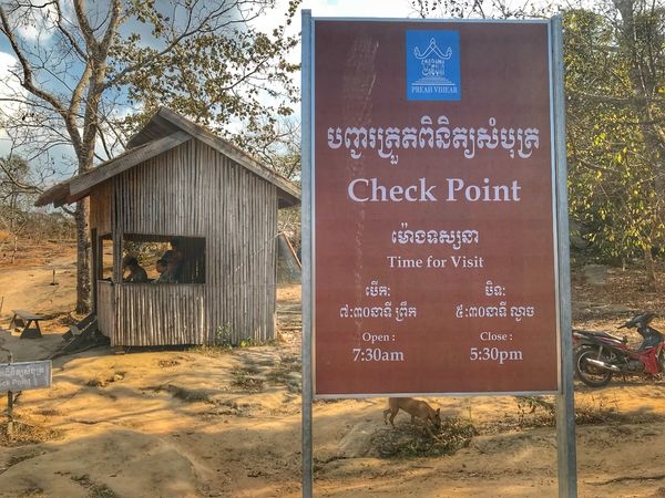 不同於小吳哥窟裡的滿滿人潮,這次旅程選擇最遠的柏威夏寺,許多遊客會選擇一大早5點多出發,早上參觀柏威夏寺,下午回程在參觀貢開金字塔。這次我們沒有趕路倒是悠閒包了台車前往,絕對不是我們睡過頭,而是想在這洪荒的古蹟裡,隨意地游走、靜靜的讓時間流失,前往柏威夏寺的路上,經過幾個純樸的柬式村落,感受跟在暹粒市區的風光不同,當然路況也不是太好,車子晃來晃去倒也停好睡的,約3.5小時抵達柏威夏寺的山腳下。