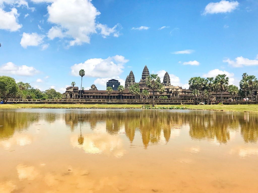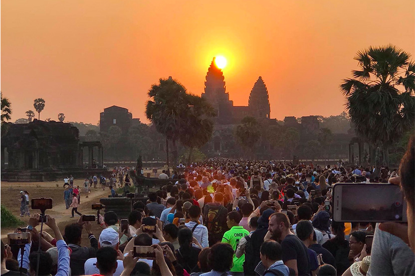 Angkor在高棉語是城市的意思,Wat是寺廟,在吳哥窟的遺蹟群只有小吳哥是面向西邊,日出時太陽會從後方升起,隨著升起的光芒,慢慢地渲染天空,太陽從塔中升上來
