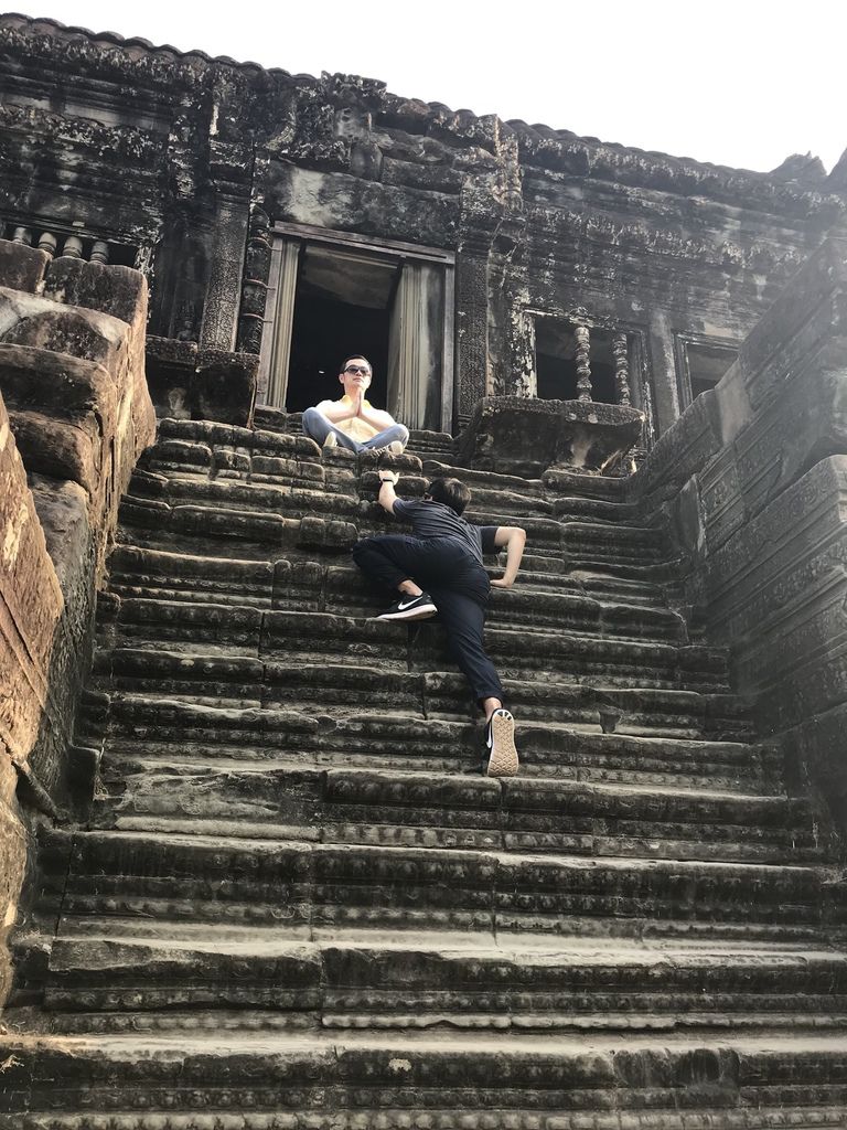 象徵須彌山的五座塔結構對稱,四面各有樓梯可登上塔頂,斜度達70度,階梯面也很狹小,需要手腳俯伏兼用,目的要讓朝拜者誠心登頂,但因多年前許多遊客失足摔落,另一蓋木樓梯供遊客上下,需要注意服裝,不可露肩露膝。不專業的鄉民發現,在第三層的平台道路上,往地下看會有不太明顯的小凹痕,一條一條的往石壁去,也許是下雨時排水的系統,也許是結構力學...