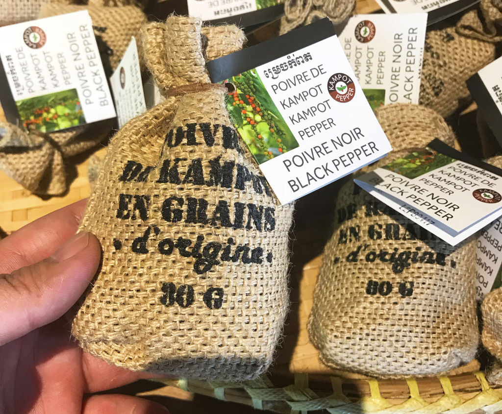 柬埔寨貢布省出產的胡椒,是歐盟認證受保護性的獨特食物,迷人濃厚的花香滋味,是許多米其林餐廳愛用調味料,在柬埔寨餐廳用餐時,不難發現胡椒的蹤影,柬埔寨胡椒分為3種顏色,黑、紅、白,許多店家也販售不同的胡椒產品,加鹽的胡椒粒、胡椒粉、檸檬胡椒汁、黑胡椒醬、不同風味的胡椒鹽等