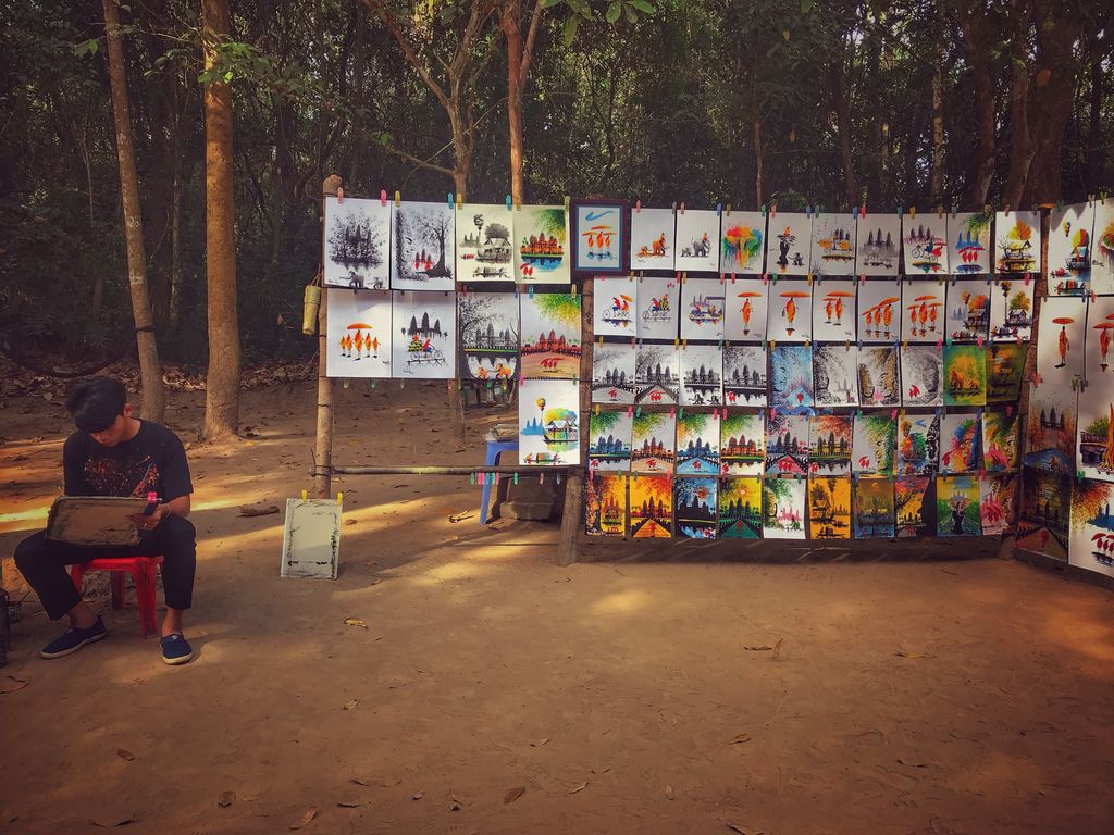 在很多市集或古蹟內都會看到畫家在進行創作,帶一幅油畫作為在吳哥窟的回憶紀念,有許多主題可以選擇,或是可以自己畫一幅帶回家,做為伴手禮也是很特別的心意