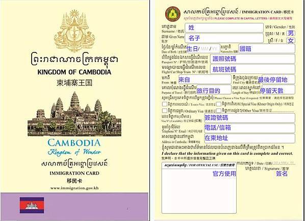 近幾年拜大量中國人入境柬埔寨投資旅遊所賜,手續簡便了不少,移民入境卡及申報單都有中文版了,有些的海關人員,甚至都會說中文了,來 走這邊! 護照護照! 單子要簽名! 小費小費!