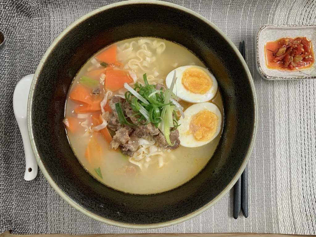 雙鹿五加皮的加入,給予這碗麵,注入一股新活力,奶香的大骨湯勾點酒香味