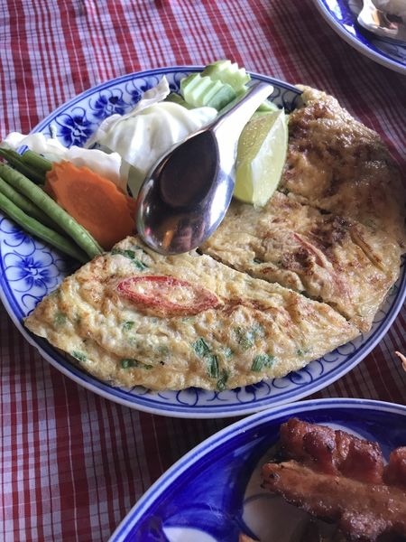 有點像台灣的九層塔蛋做法,混著鹹魚、碎豬肉、蔬菜、蛋液去煎