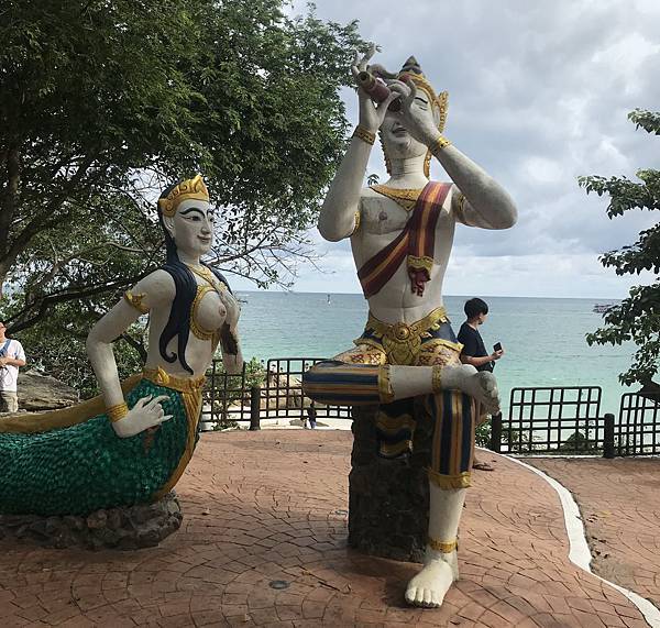 沙美島不是一個很大的島,騎摩托車環完一圈大概一個多小時,有些沙灘周邊有咖啡廳或不錯的拍照景點,也有關於沙美島愛情故事的雕像,所以我們就跟著故事的脈絡去環島了。